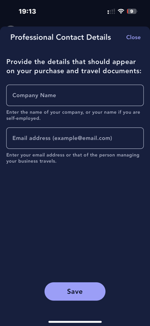 In the Business profile, accessible from the ""Account"" section, you will find all your business travels and be able to: