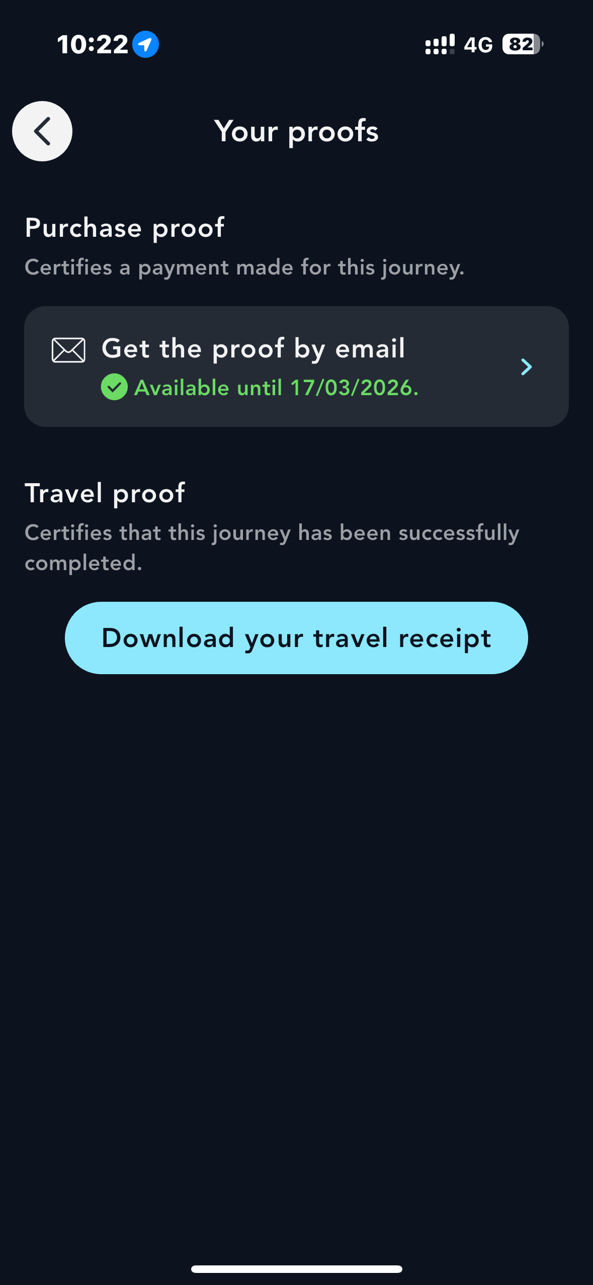 You can download your proof of travel between 24 and 48 hours after your last journey, from the 'Tickets' section under the 'Your past journeys' tab.