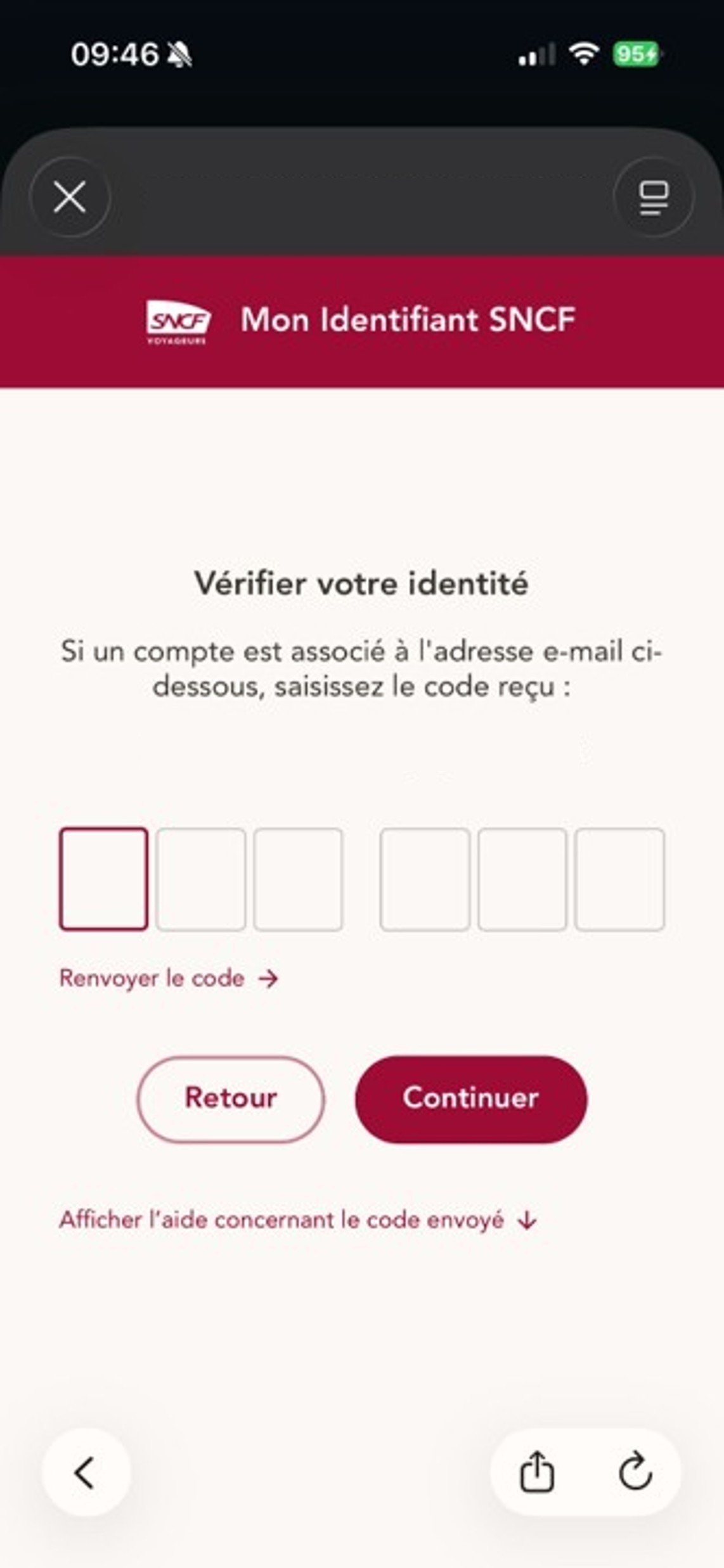 • L'envoi du code peut prendre quelques minutes.