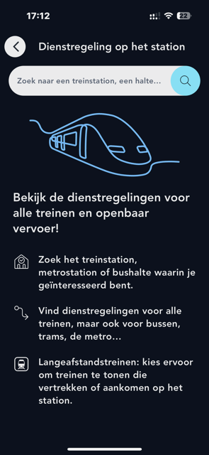 Tik op de startpagina van de app op ‘Dienstregeling op het station’
